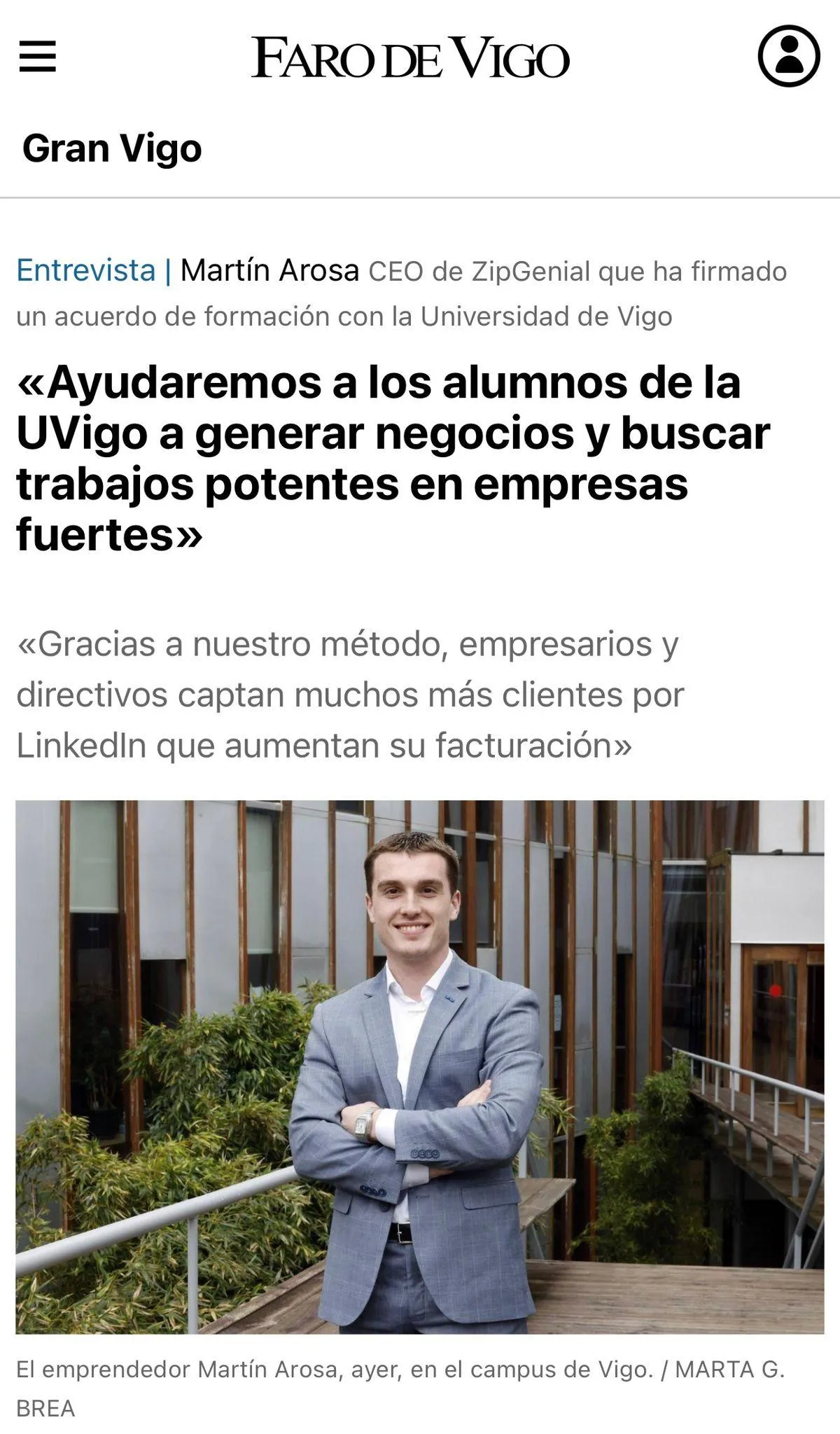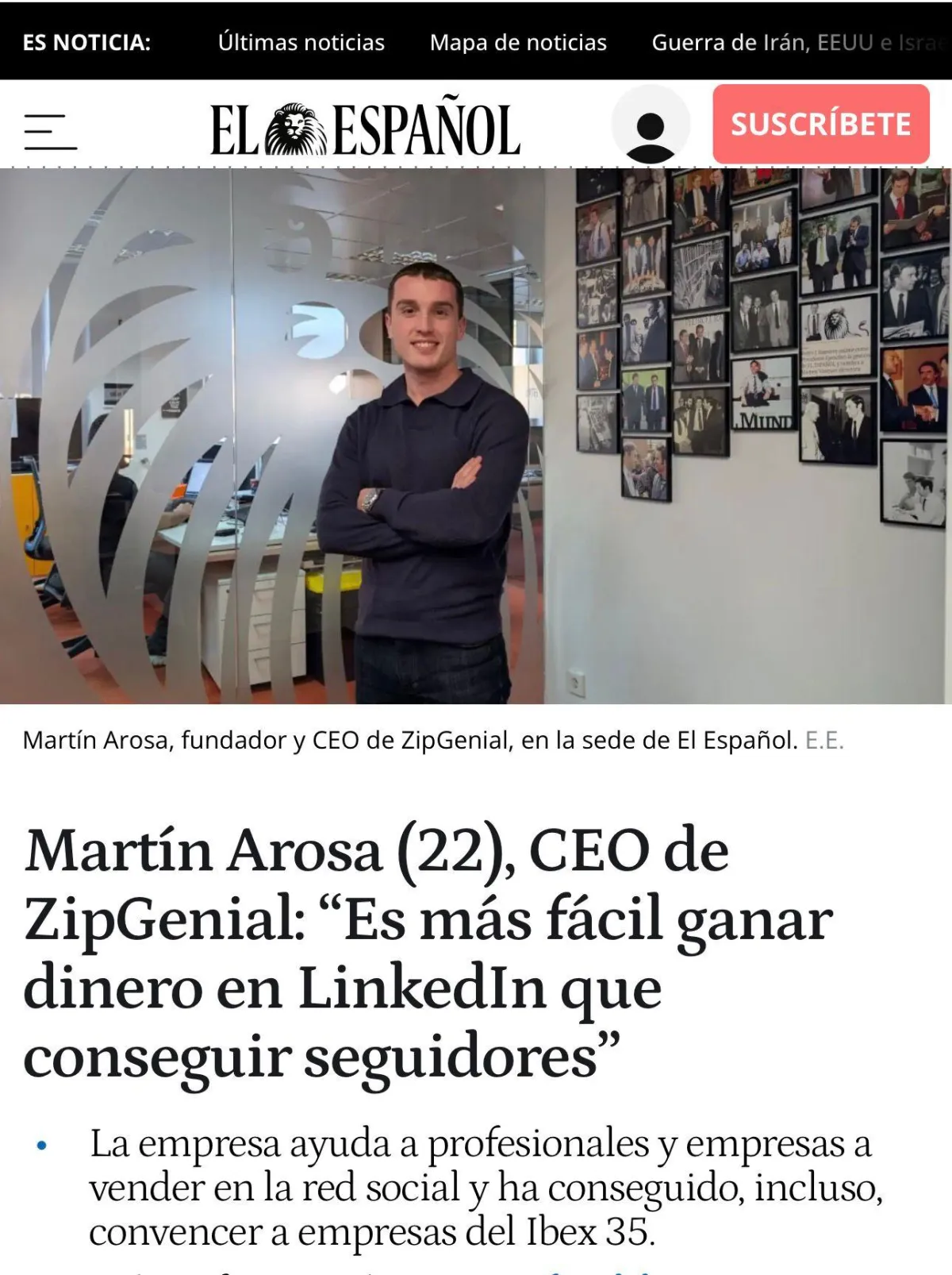 Nuestro trabajo ha sido reconocido por distintos periódicos, que han destacado nuestra experiencia en captación de leads B2B a través de LinkedIn, posicionándonos como una referencia en el crecimiento y la monetización digital.